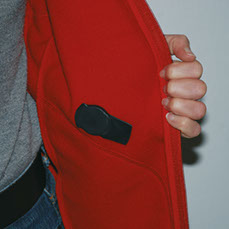 The Top-Matic MULTI or MAXI Power Clip can be placed anywhere on your clothing(even under multiple layers of clothes) where you would like to dock the Technic-Ball or Fun-Ball.