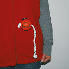 Sie können den Top-Matic® Fun-Ball wie auch den Top-Matic® Technic-Ball an der äußeren Scheibe des Multi bzw. Maxi Power-Clips oder am außenliegenden Kleidungsstück magnetisch anbringen.
